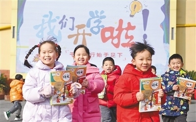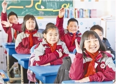 安徽省合肥市蜀山區(qū)北苑村社區(qū)琥珀小學(xué)(東區(qū)),孩子們?cè)谛@里迎接新學(xué)期的到來(lái)。陳三虎攝(影像中國(guó))
