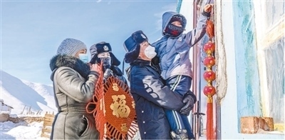 在新疆維吾爾自治區(qū),阿勒泰邊境管理支隊(duì)富蘊(yùn)大隊(duì)吐爾洪邊境派出所的民警和護(hù)邊員到偏遠(yuǎn)山區(qū)困難群眾家中探訪。李銘驥攝(影像中國(guó))