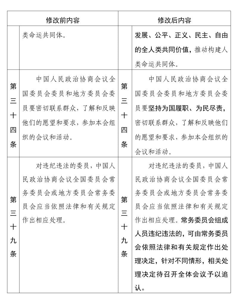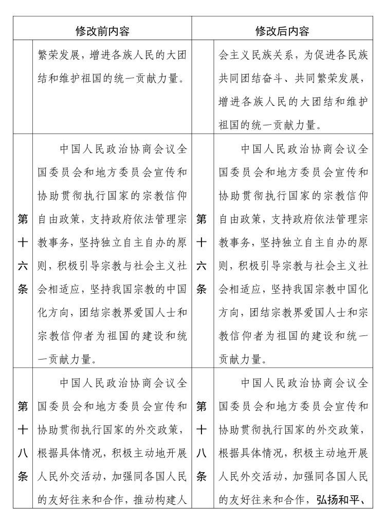 中國人民政治協(xié)商會(huì)議章程 修改前后內(nèi)容對照表