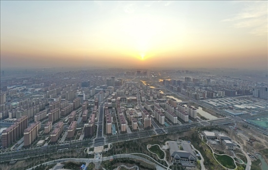 3月31日在雄安新區(qū)拍攝的日出(無(wú)人機(jī)照片)。