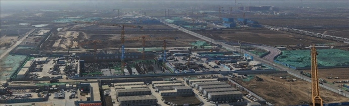 這是位于雄安新區(qū)啟動(dòng)區(qū)的中國(guó)中化雄安總部001大廈項(xiàng)目建設(shè)現(xiàn)場(chǎng)(3月30日攝,無(wú)人機(jī)照片)。