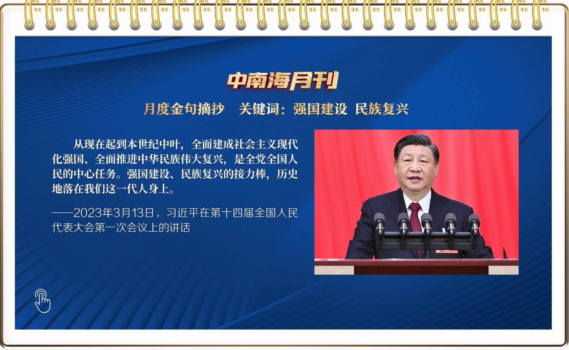 央視網(wǎng)《中南海月刊》運(yùn)用智能大數(shù)據(jù),與您一起回顧習(xí)近平總書(shū)記3月份繁忙的工作和講話,感受我們共和國(guó)前進(jìn)掌舵者、人民幸福領(lǐng)路人赤誠(chéng)的為民情懷和天下胸懷。