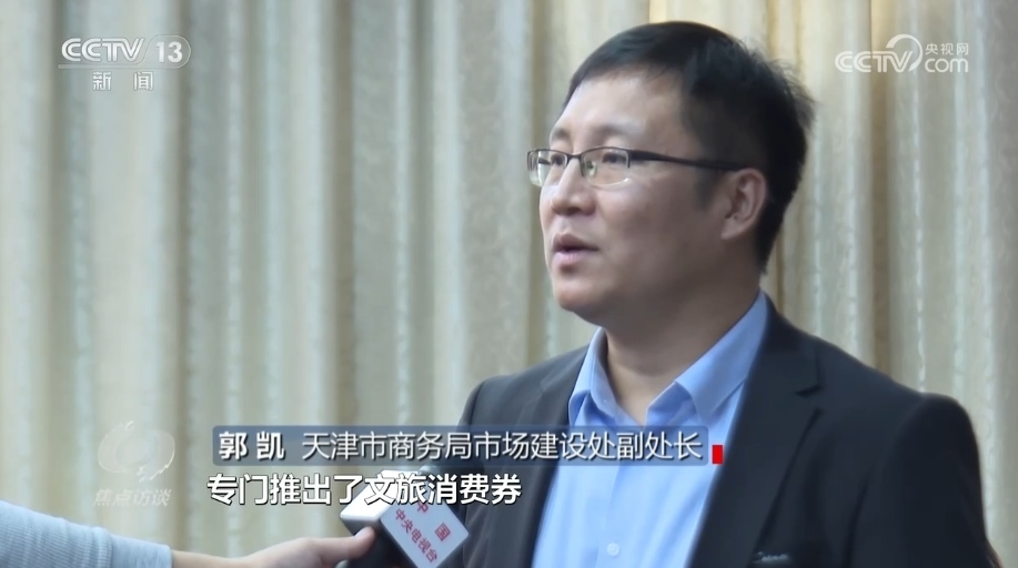 天津市商務局市場建設處副處長郭凱:“通過文旅商融合,豐富商業(yè)場景,能夠擴大消費主體數(shù)量,吸引更多外地消費者來津消費。我們和文旅部門協(xié)作,專門推出了文旅消費券,這個是面向全國,特別是京冀天津周邊的消費者,讓消費者享受到更多實惠,進一步活躍消費市場。”