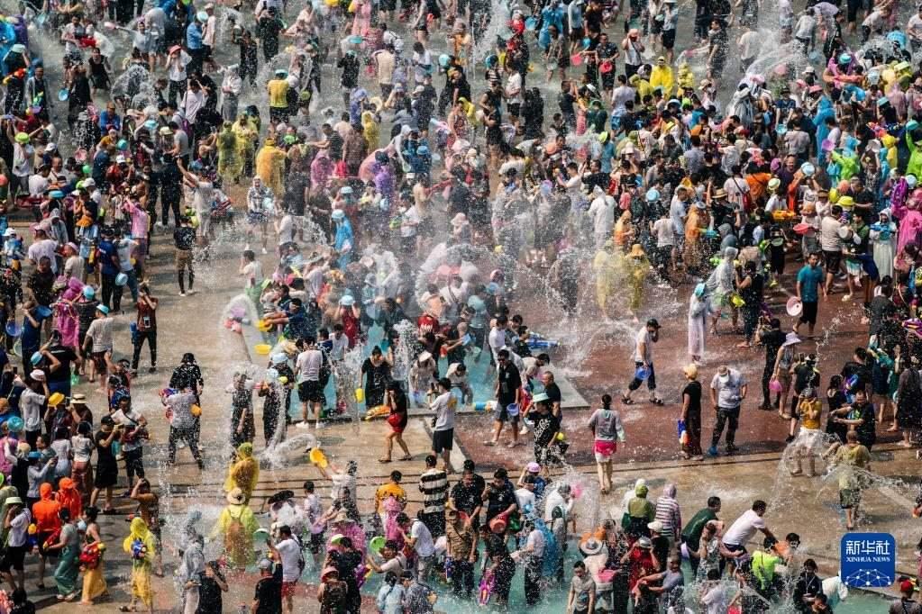 當(dāng)日,云南省西雙版納傣族自治州舉行傣歷新年取水儀式及潑水狂歡,數(shù)萬名各族群眾和游客在景洪市用相互潑水的方式互送祝福、傳遞歡樂。