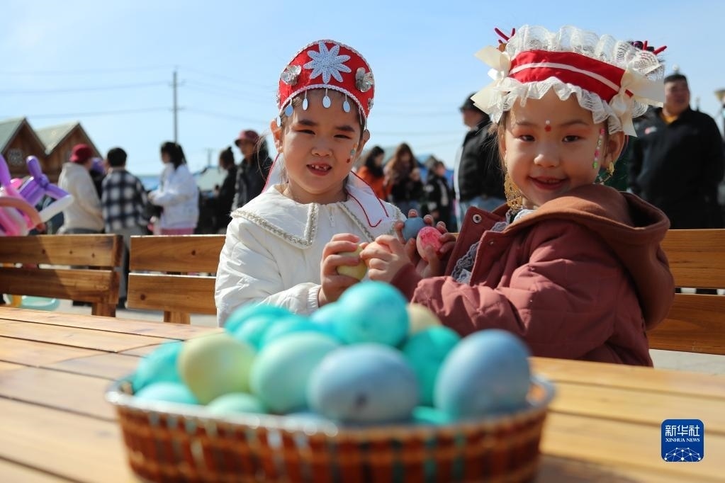 當(dāng)日,內(nèi)蒙古呼倫貝爾市額爾古納市恩和俄羅斯族民族鄉(xiāng)的俄羅斯族群眾穿著鮮艷的民族服飾,載歌載舞,歡度巴斯克節(jié)。已被列入國家級非物質(zhì)文化遺產(chǎn)名錄的巴斯克節(jié)是俄羅斯族一年中最隆重的節(jié)日,在為期一周的節(jié)日里,當(dāng)?shù)厝罕娖穱L美食、互相撞彩蛋、參加拔河、搶棍等活動。   新華社記者 王楷焱 攝