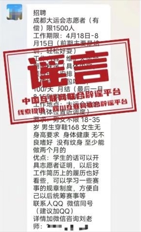 謠言:成都大運會志愿者招募中,將按月發(fā)放補貼?