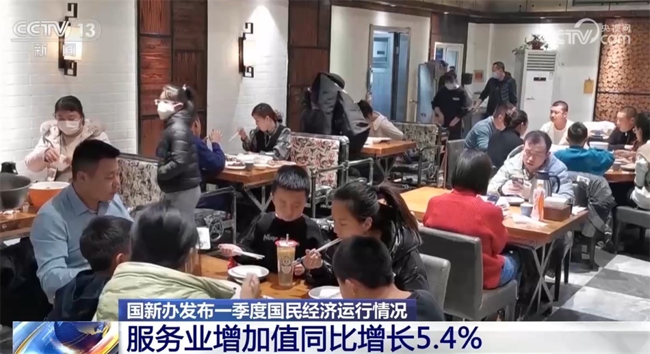 服務(wù)業(yè)增速明顯回升。一季度,服務(wù)業(yè)增加值同比增長5.4%,高于上年四季度3.1個(gè)百分點(diǎn)。前期受疫情影響較大的接觸型、聚集型服務(wù)業(yè)回升尤為突出。