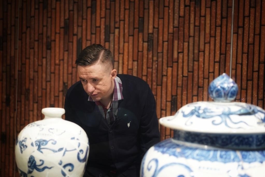 在江西景德鎮(zhèn)御窯博物院的展柜燈光下,一件青花瓷盤散發(fā)著藍白相間的光澤,疏密有致的葡萄紋在盤中心環(huán)繞生長,紋理細節(jié)清晰可見。這件燒制于約600年前的宣德青花葡萄紋菱口盤,吸引了來自烏茲別克斯坦的留學(xué)生紹夫卡特·沙穆拉托夫的目光。
