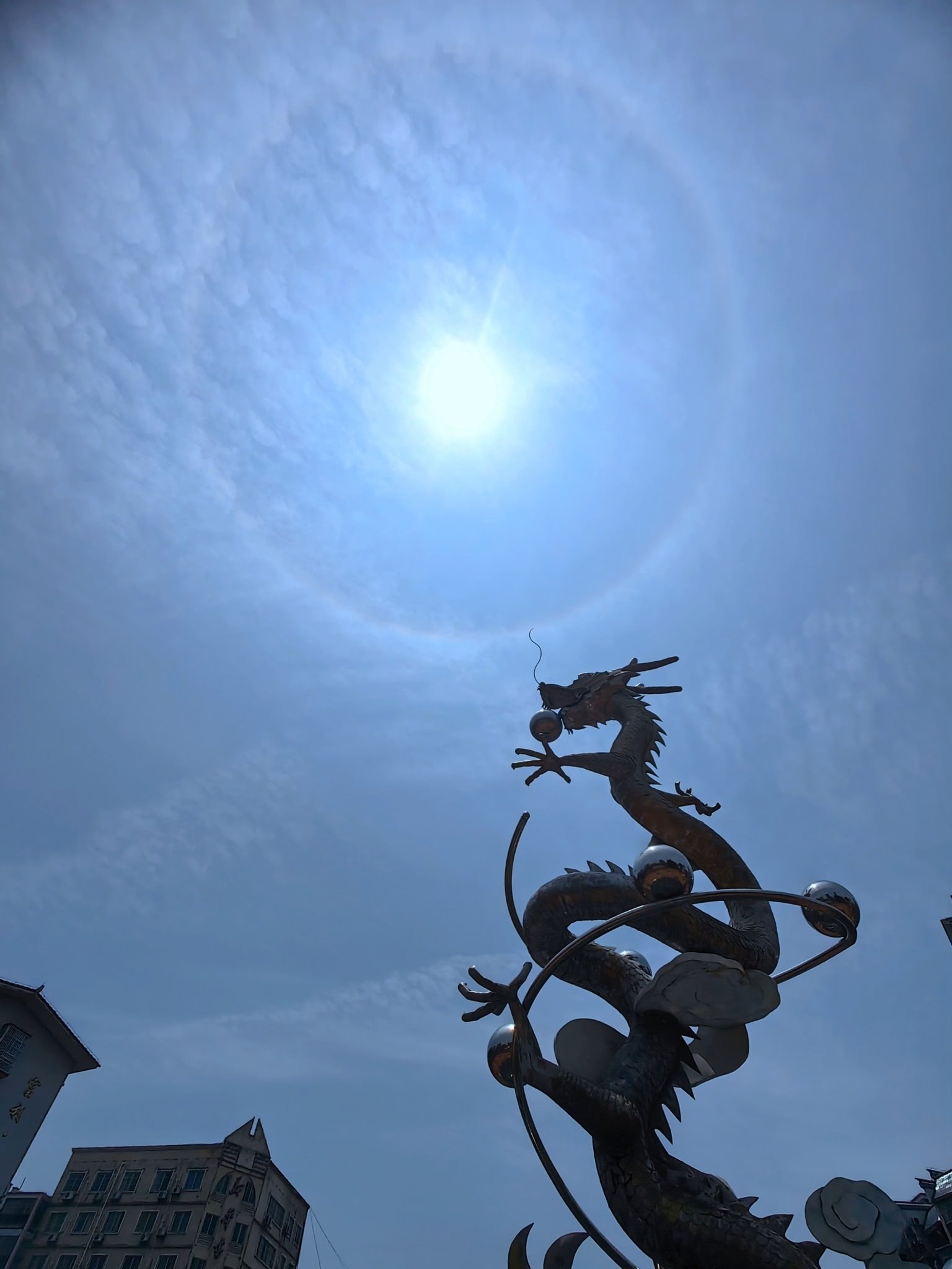 2023年4月30日,廣西來(lái)賓,忻城縣上空出現(xiàn)日暈景觀。視覺(jué)中國(guó)
