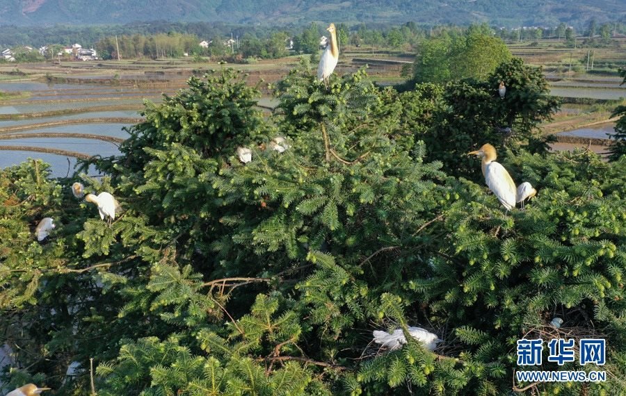 航拍安徽省宣城市旌德縣興隆鎮(zhèn)三山村,良好的生態(tài)環(huán)境吸引眾多鳥類在這里安家落戶。新華網(wǎng)發(fā)(江建興 攝)