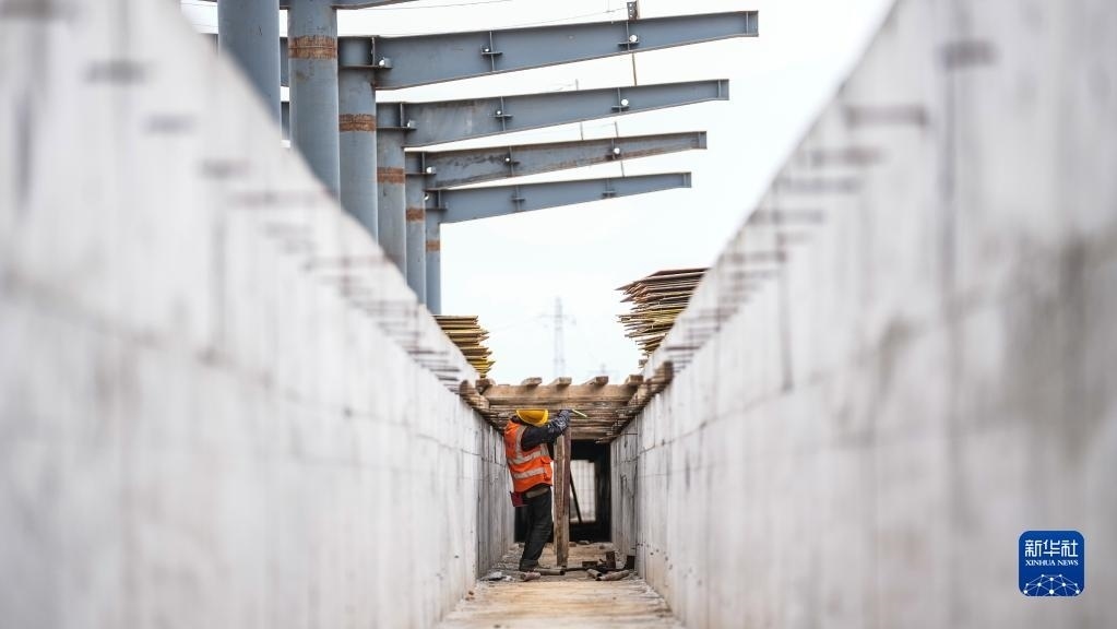 5月1日,中鐵建工集團(tuán)工人在貴州貴安新區(qū)貴安站擴(kuò)建項(xiàng)目工地施工。