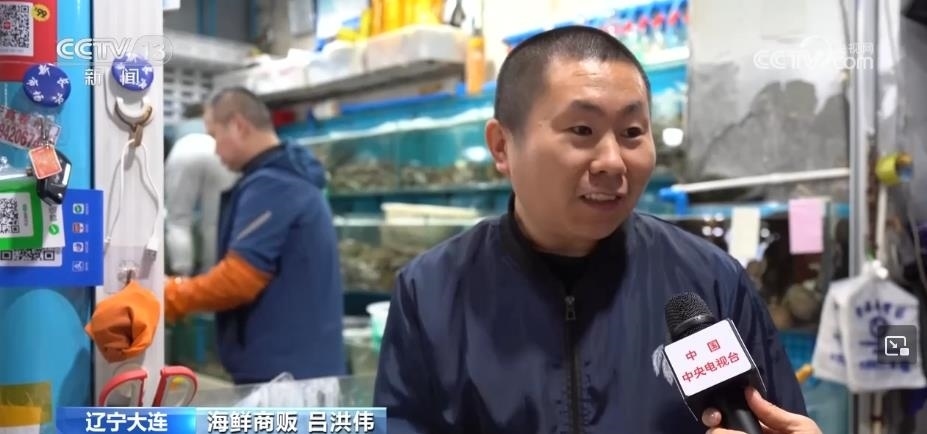 吳軍成和表弟呂洪偉經(jīng)營(yíng)的海鮮攤在距離遼漁碼頭24公里外的新長(zhǎng)興海鮮市場(chǎng)。這里是大連城區(qū)最大的海鮮市場(chǎng),不僅輻射周?chē)木用駞^(qū),不少酒店后廚和單位食堂也來(lái)這里備貨。