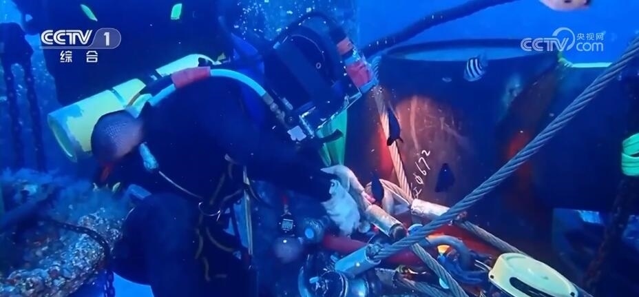 海南文昌,風(fēng)急浪涌。海洋石油平臺(tái)的高空作業(yè)人員身系安全繩,游走在高聳的井架之間,進(jìn)行井架的維護(hù)保養(yǎng)作業(yè)。而在百米水下,記者用水下攝像機(jī)記錄了石油工人潛水檢修油氣平臺(tái)設(shè)備。單次作業(yè)的時(shí)間只有20分鐘,潛水員需要背著35公斤重的裝備,在極短的時(shí)間內(nèi)到達(dá)指定位置,并完成復(fù)雜的作業(yè),技術(shù)難度非常大。