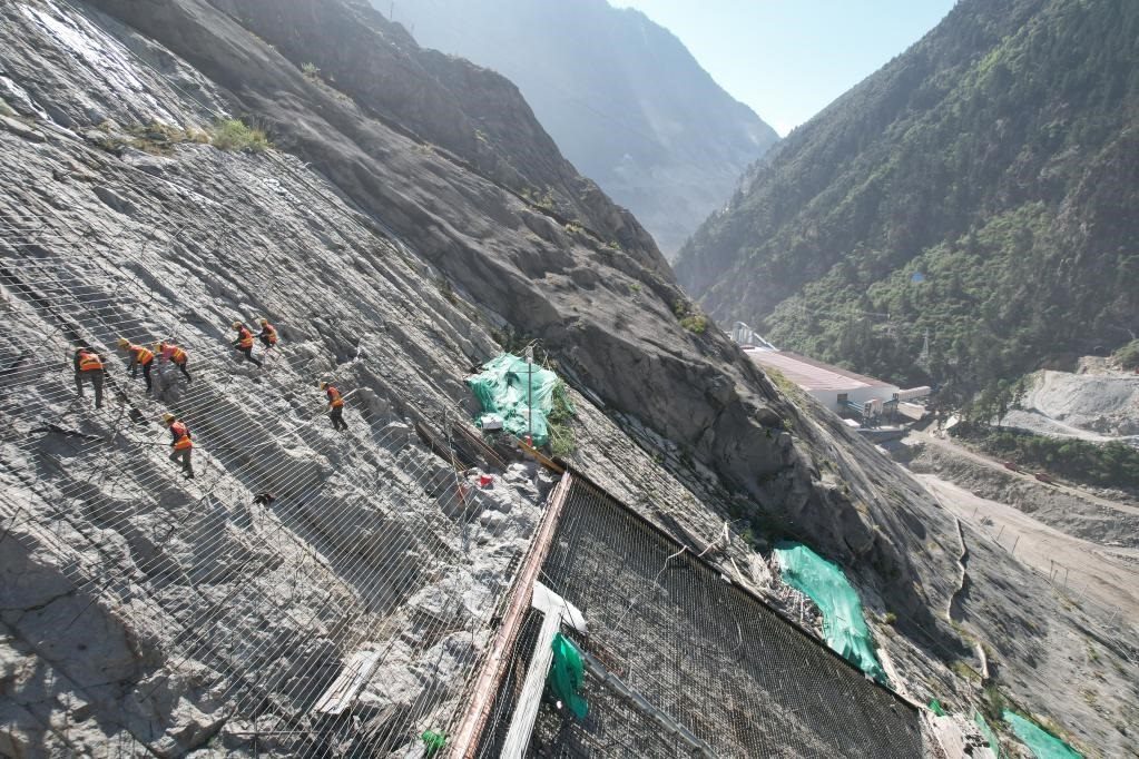 建設(shè)者奮戰(zhàn)在雙江口水電站施工一線。新華社記者楊進(jìn) 攝