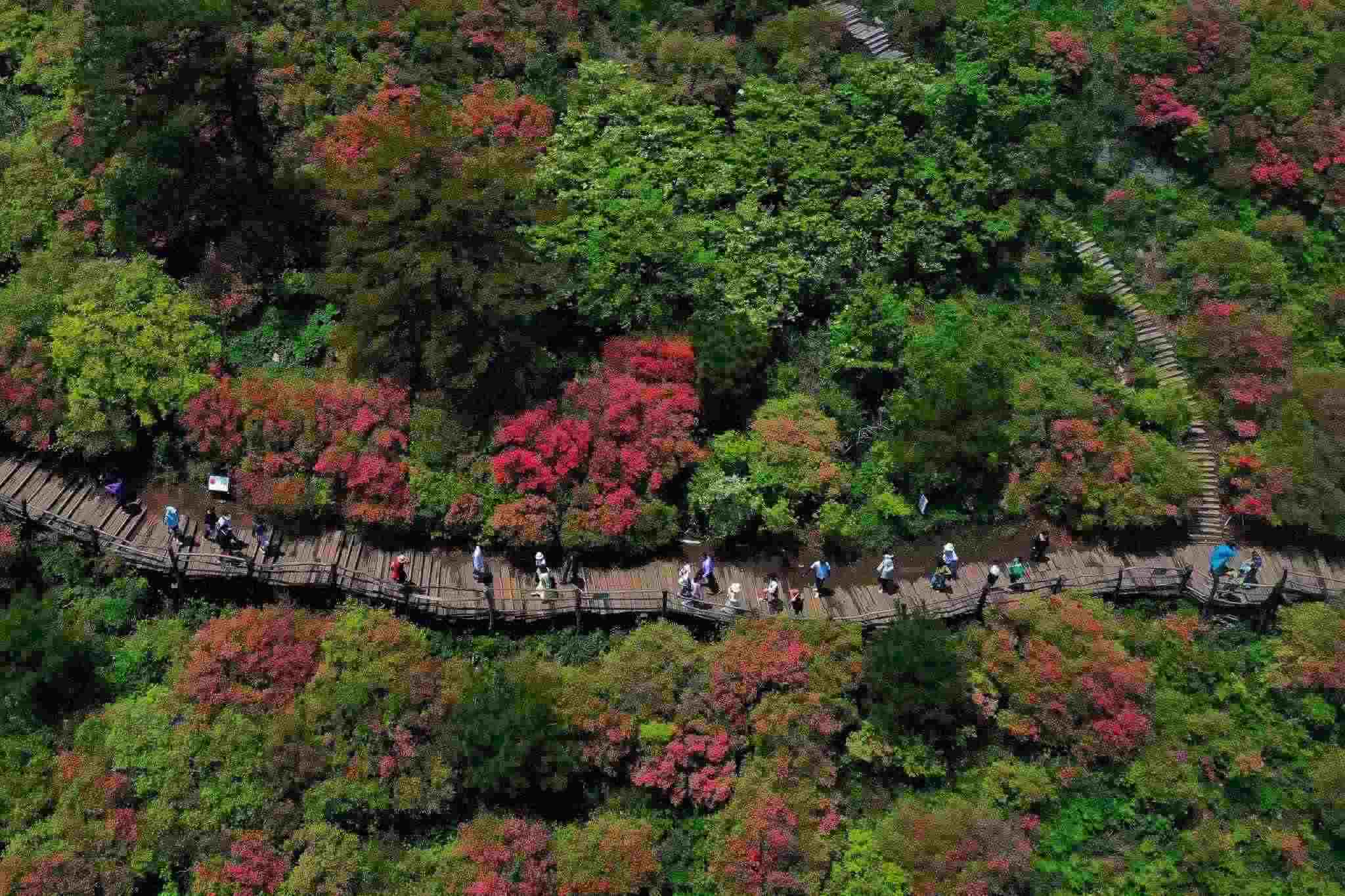 2023年5月5日,湖北黃岡,龜峰山杜鵑花綻放。視覺中國