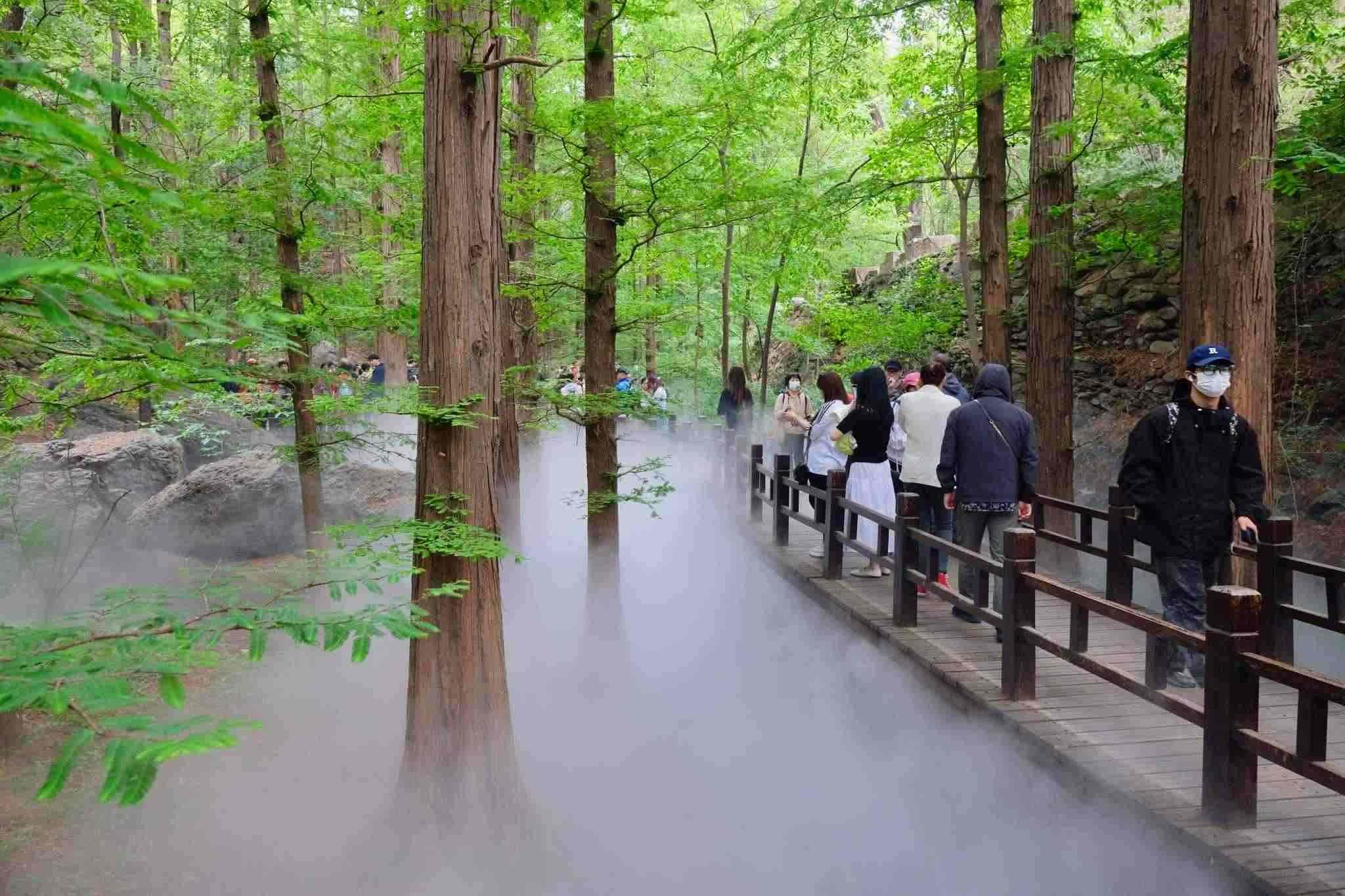 2023年5月6日,北京,立夏時(shí)節(jié),萬物繁茂,國家植物園櫻桃溝景區(qū)“云霧繚繞”宛若“仙境”。視覺中國