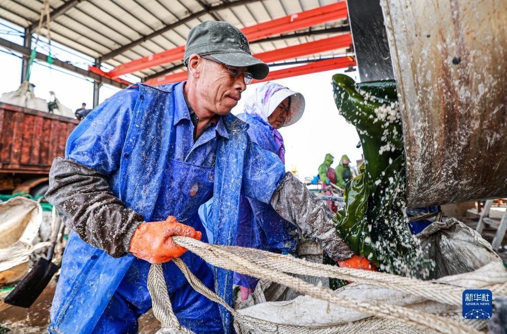 山東省榮成市被譽(yù)為“中國海帶之鄉(xiāng)”,海帶年產(chǎn)量43萬噸,其中鹽漬海帶近26萬噸,產(chǎn)品暢銷國內(nèi)外市場(chǎng)。新華社發(fā)(李信君 攝)