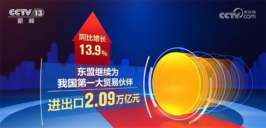 同期,東盟繼續(xù)為我國第一大貿(mào)易伙伴,對東盟進(jìn)出口2.09萬億元,同比增長13.9%,占我國外貿(mào)總值的15.7%;對歐盟進(jìn)出口1.8萬億元,同比增長4.2%,增速較一季度加快2.2個(gè)百分點(diǎn)。