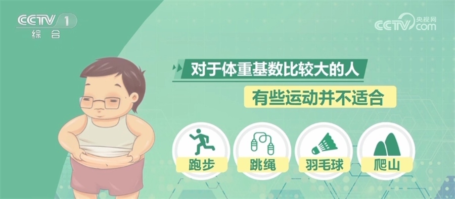 專家尤其提示,對于體重基數比較大的人,有些運動并不適合,比如跑步、跳繩、羽毛球、爬山等。因為長期從事這些運動會增加下肢負荷,容易造成膝踝關節(jié)的運動損傷。科學減重一定要找到適合自己的運動方式,并保持正確的運動姿勢。