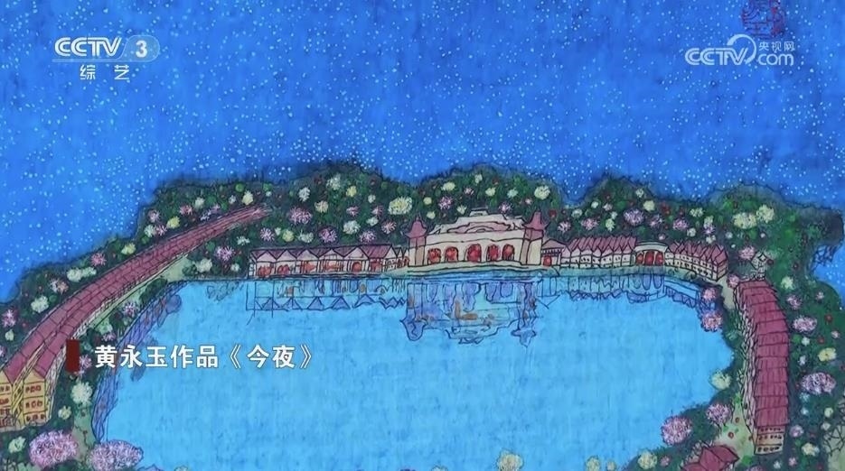 黃永玉:我畫了一張畫,畫我們太陽城的夜景。滿天星,我下面寫的字,題目叫作《今夜》。