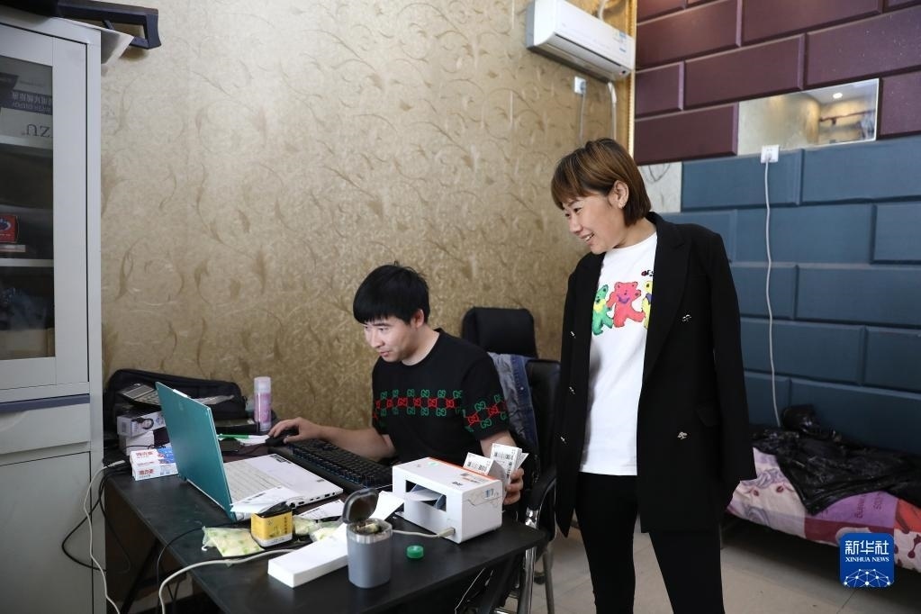 5月11日,韓丹在自己開的網(wǎng)絡傳媒公司內(nèi),詢問當天直播售貨情況。