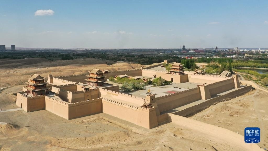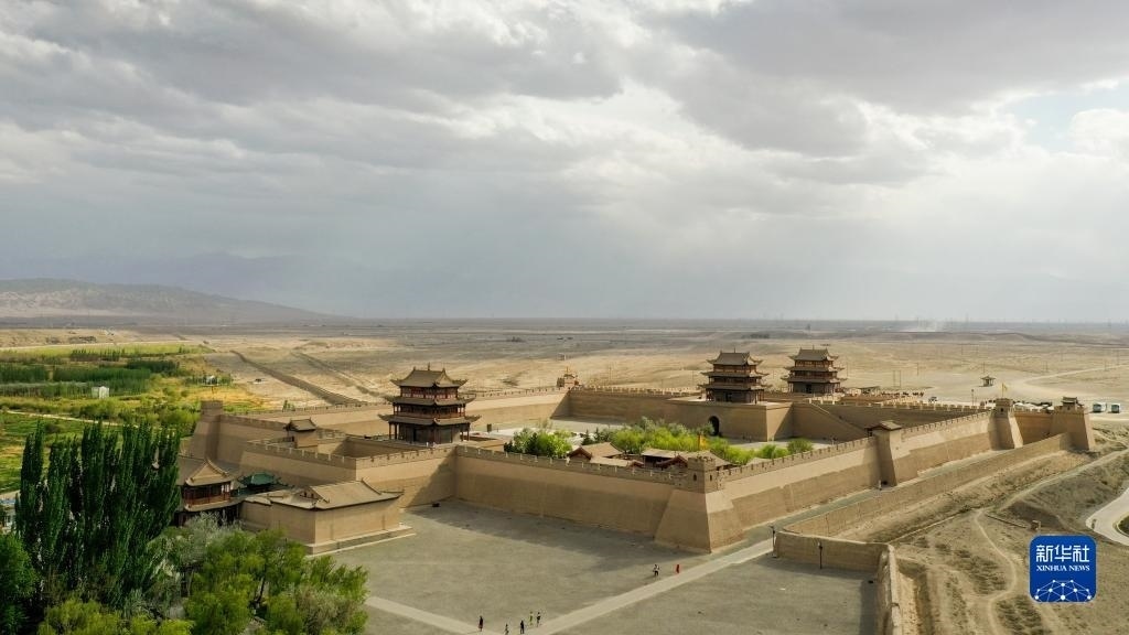 這是5月17日在甘肅省嘉峪關(guān)市拍攝的關(guān)城景區(qū)(無(wú)人機(jī)照片)。