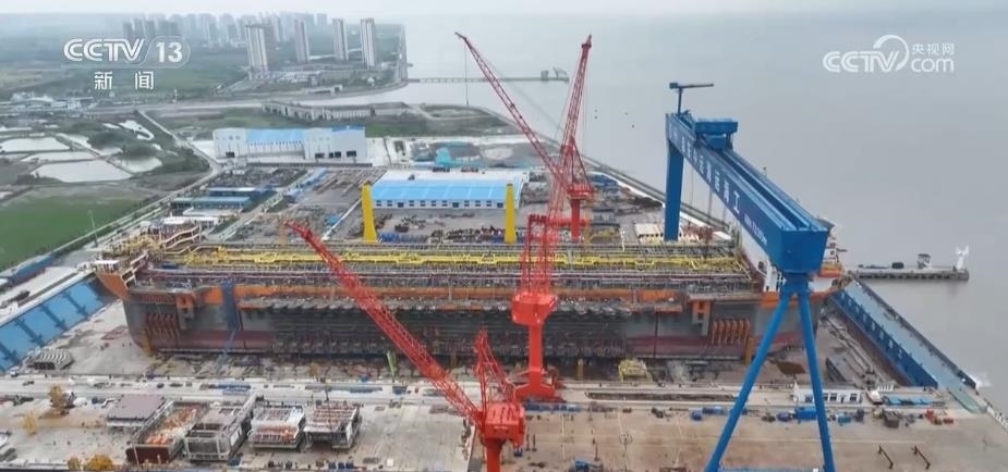 總臺記者 唐高林:我現(xiàn)在是在位于長江入海口的一家船舶制造企業(yè),高質(zhì)量發(fā)展調(diào)研行的團隊,正在這里調(diào)研。這幾天調(diào)研團一路沿江而下,從南京到揚州再到無錫等多個城市,看到了江蘇作為制造業(yè)大省,持續(xù)推進“產(chǎn)業(yè)強鏈補鏈”計劃,實體經(jīng)濟呈現(xiàn)出良好的發(fā)展態(tài)勢。