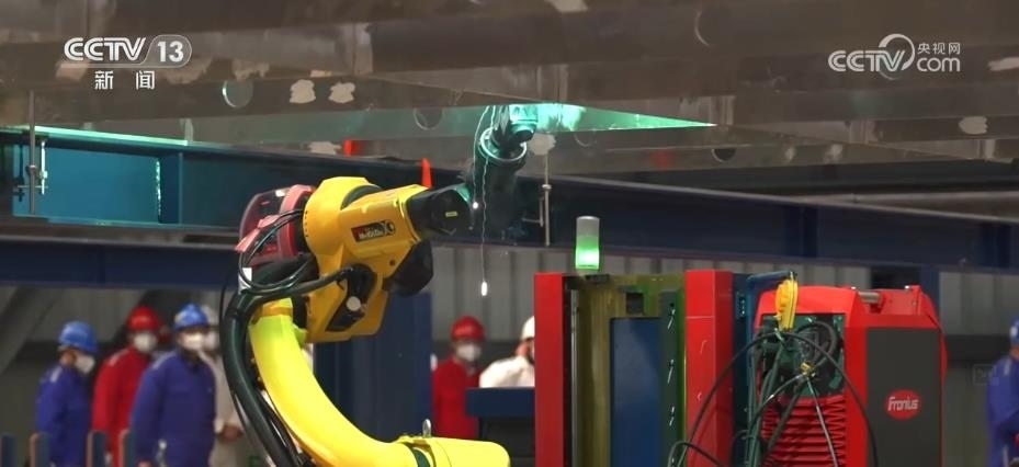 記者來到這個剛剛建成不久的智能化造船車間,一臺臺焊接機器人,正在自主完成作業(yè)。