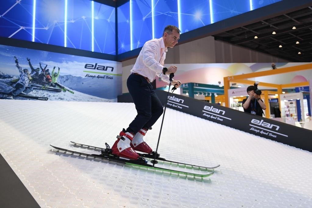 5月16日,來(lái)自斯洛文尼亞伊蘭品牌的企業(yè)代表現(xiàn)場(chǎng)展示雪具產(chǎn)品。新華社記者黃宗治 攝