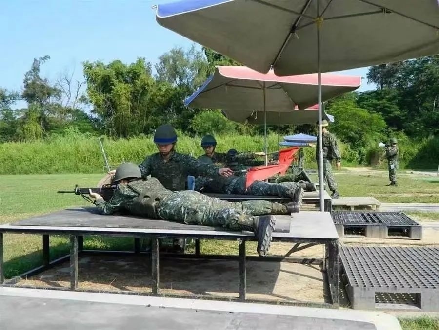 臺(tái)兵在太陽傘下訓(xùn)練射擊被臺(tái)媒諷刺為“草莓兵”