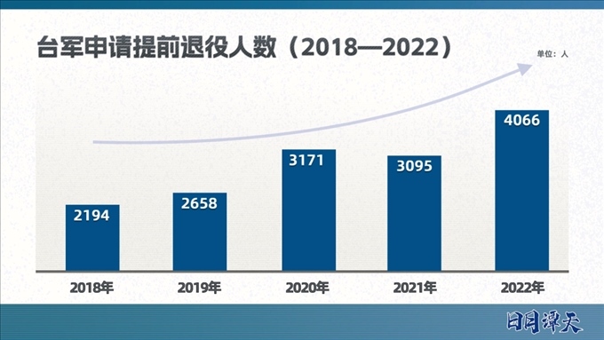 目前,臺(tái)軍實(shí)行以志愿役為主,義務(wù)役為輔的混合兵役制度。臺(tái)軍的主戰(zhàn)部隊(duì)由志愿役人員構(gòu)成,通過招募而來、至少服役4年,這次上熱搜的“申請(qǐng)?zhí)崆巴艘鄣?000多人”主要就是志愿役士兵。