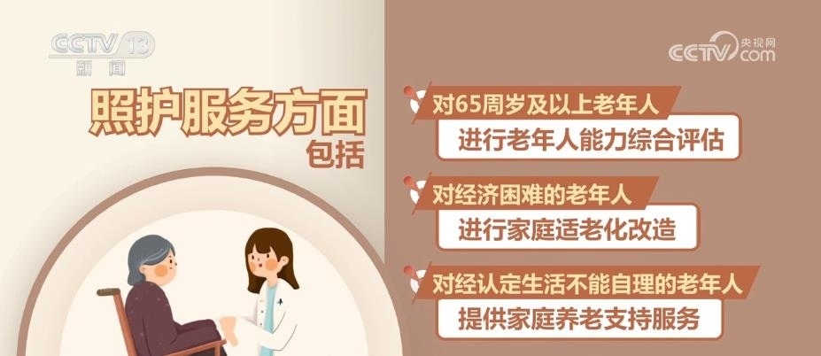 照護(hù)服務(wù)方面包括:對65周歲及以上老年人進(jìn)行老年人能力綜合評估;對經(jīng)濟(jì)困難的老年人進(jìn)行家庭適老化改造;對經(jīng)認(rèn)定生活不能自理的老年人提供家庭養(yǎng)老支持服務(wù);對特困老年人進(jìn)行集中供養(yǎng)或者分散供養(yǎng);對國家和社會作出特殊貢獻(xiàn)的老年人提供集中供養(yǎng)服務(wù);計劃生育特殊家庭老年人優(yōu)先享受機(jī)構(gòu)養(yǎng)老。