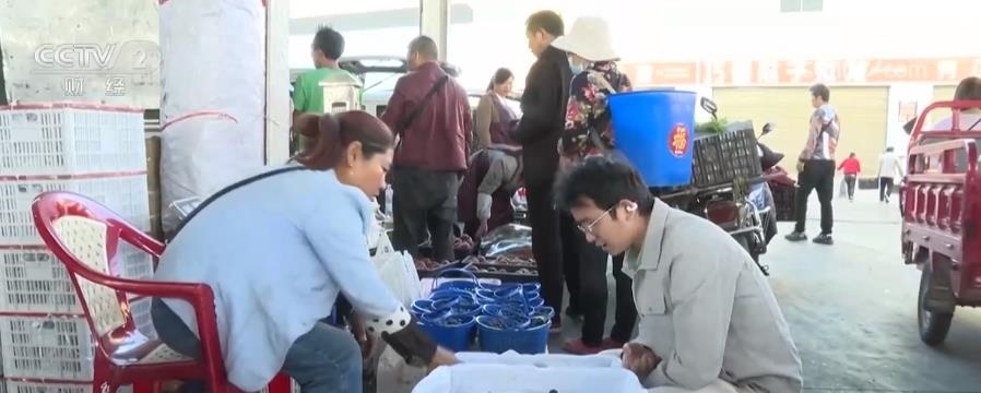 一大早,記者來到云南曲靖的水果批發(fā)市場,看到多家藍莓批發(fā)商生意火熱。攤位上一筐筐大大小小的藍莓飽滿圓潤,吸引了不少顧客,賣了多年水果的郭先生告訴記者,目前正是本地藍莓的豐收季,這些藍莓將陸續(xù)被稱重、裝車,即將運往省內(nèi)外各個零售門市和商超。
