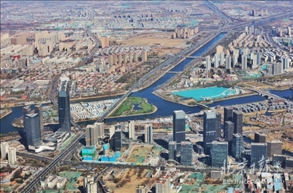 今天,古塔腳下,新城崛起。登臨五河交匯處的高樓觀景平臺,憑欄眺望,只見運河水道兩側,現代化樓宇鱗次櫛比。這里是城市副中心運河商務區(qū)所在地,20679家注冊企業(yè)入駐、包括國家級綠色交易所在內的一批重大項目相繼落戶,為其注入勃發(fā)生機。