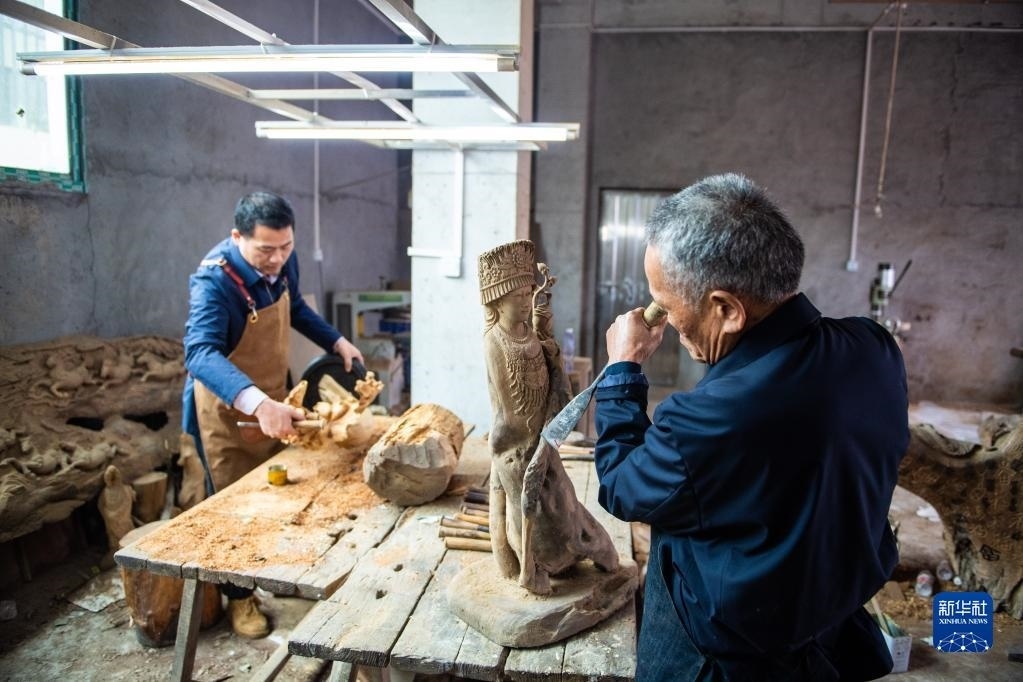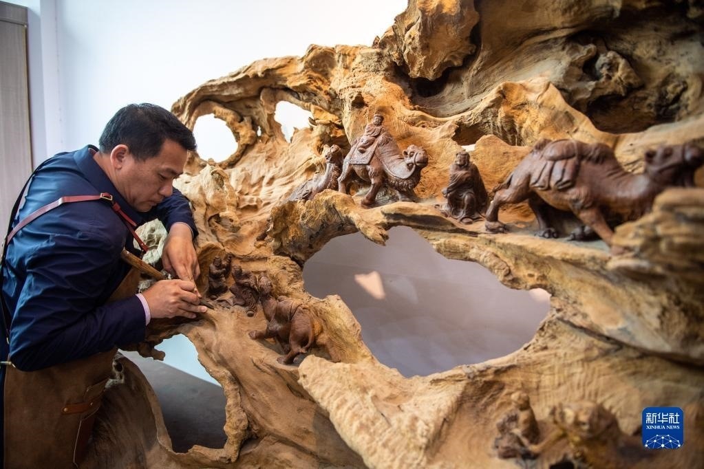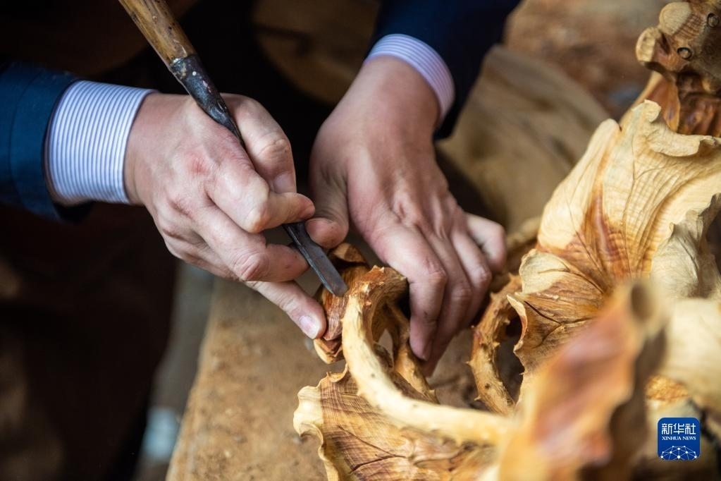 洞口木雕已被正式列入湖南省省級(jí)非物質(zhì)文化遺產(chǎn)名錄,木雕產(chǎn)品遠(yuǎn)銷70多個(gè)國(guó)家和地區(qū)。新華社記者 陳思汗 攝