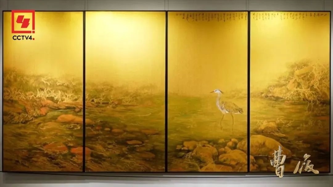 他把潑彩和工筆相結(jié)合,創(chuàng)作出了一種新風(fēng)格的作品,在這種風(fēng)格的作品中,體現(xiàn)了宋代審美中高古的意境,同時(shí)又抒發(fā)了大文化、大關(guān)懷。