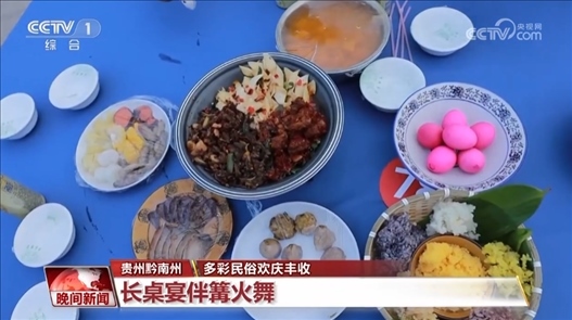 貴州黔南州:長(zhǎng)桌宴伴篝火舞