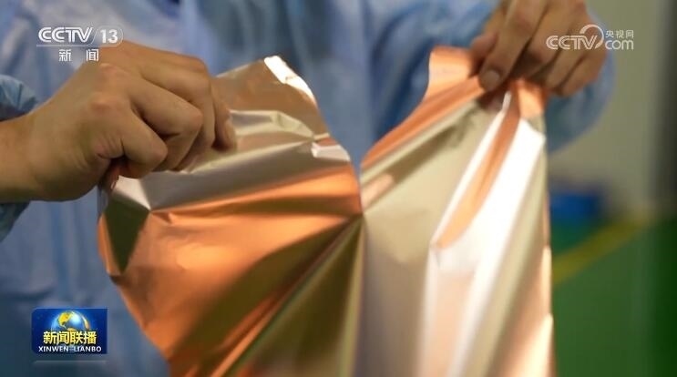 在這家國家級專精特新企業(yè)的車間里,生產(chǎn)的依舊是以銅為基礎(chǔ)的銅箔,但是質(zhì)感卻像紙巾一樣柔軟,甚至可以輕易撕開。這里面最薄的只有3.5微米,達到了世界先進水平。產(chǎn)品主要用在新能源汽車的動力電池上,企業(yè)的定位也變成了鋰電新材料產(chǎn)業(yè)。