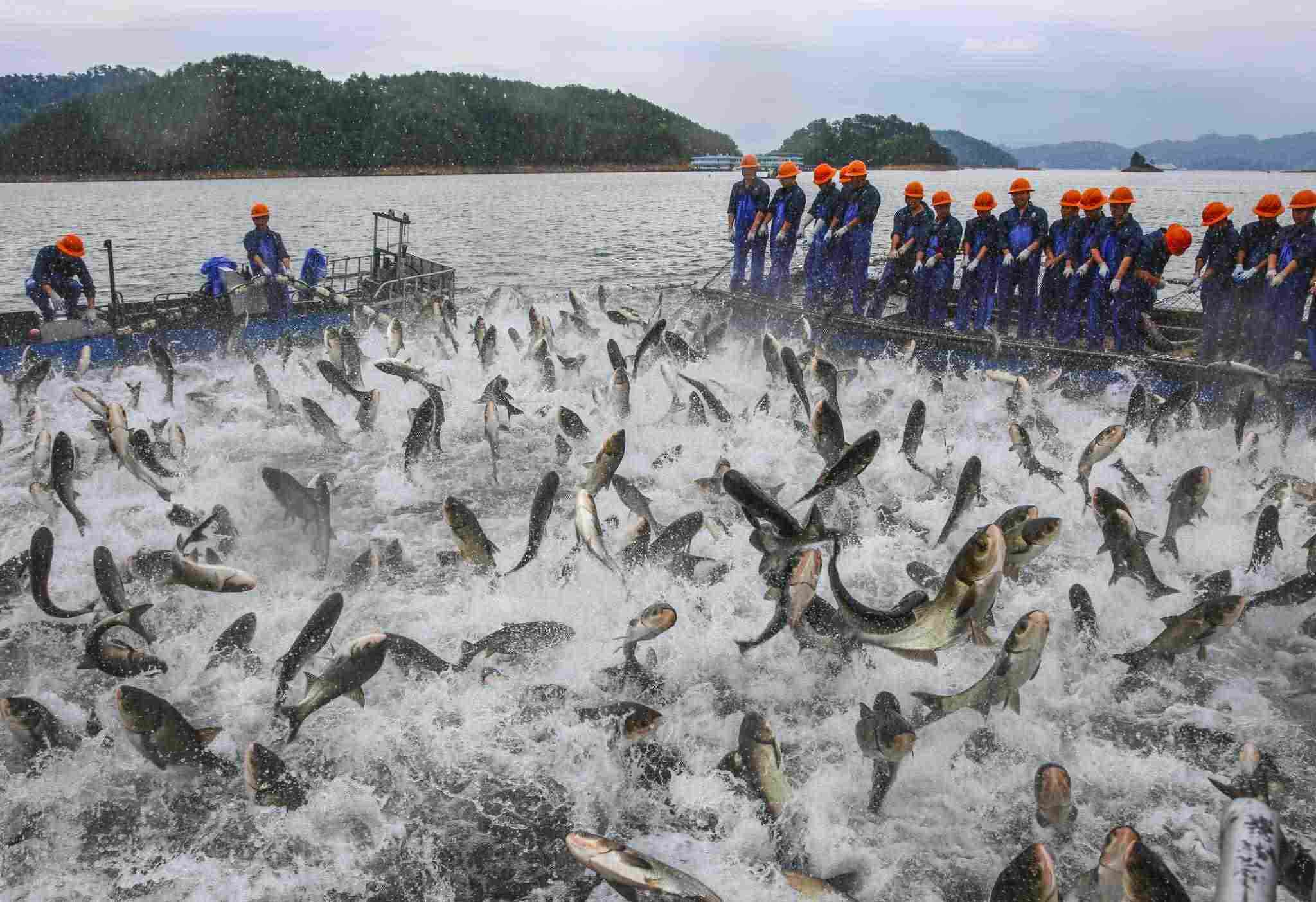 杭州:千島湖再現(xiàn)“巨網(wǎng)捕魚”景象