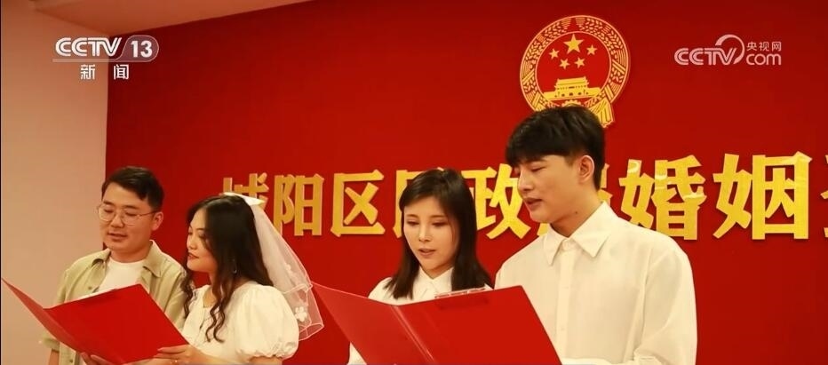 新人 薛雷:非常幸福,非常開(kāi)心?!翱缡⊥ㄞk”婚姻登記業(yè)務(wù)大大節(jié)省了我們的時(shí)間成本,以及機(jī)票往返費(fèi)用1萬(wàn)多元的成本。