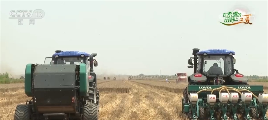 當然,確保顆粒歸倉,除了要減損,更要及時搶收。今年麥收期間,當?shù)赜錾狭撕币姷慕涤晏鞖?,而?日開始預計還會有一輪降雨,所以大比武的同時,搶收也在抓緊進行,大家要抓緊這幾天的窗口期,進行24小時的搶收作業(yè)。農(nóng)業(yè)專家告訴我,在當?shù)?,降雨對于麥收的影響有兩點,一個是土地變得潮濕松軟,大型機械下地難。針對這點,當?shù)匾膊扇×舜胧?,在一些土地還沒有干透的麥田里,我們看到有不少履帶式的收割機,它們雖然體型稍小,但履帶可以避免陷入土地,還有一些無人駕駛的智慧農(nóng)機,可以解決搶收時的人手問題。這些都是當?shù)剞r(nóng)業(yè)部門按照農(nóng)戶需求及時幫助調(diào)配的。目前,阜南全縣投入聯(lián)合收割機4300多臺,組建了搶收服務隊76個、農(nóng)機維修服務隊28個,將爭取在5天內(nèi)完成全部麥收。