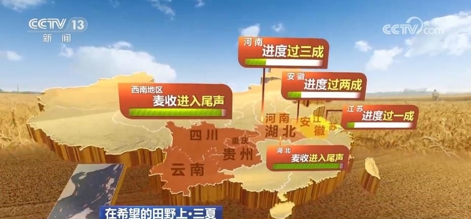 農(nóng)業(yè)農(nóng)村部小麥機收調(diào)度顯示,目前,全國已收冬小麥面積7500多萬畝,麥?zhǔn)者M度過兩成。其中,西南地區(qū)、湖北麥?zhǔn)者M入尾聲;河南進度過三成、安徽進度過兩成、江蘇進度過一成。
