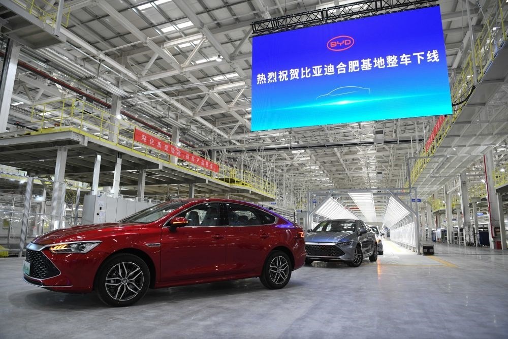 2022年6月30日,比亞迪合肥基地項(xiàng)目整車(chē)下線儀式在安徽省合肥市長(zhǎng)豐縣下塘鎮(zhèn)舉行。新華社記者 張端 攝