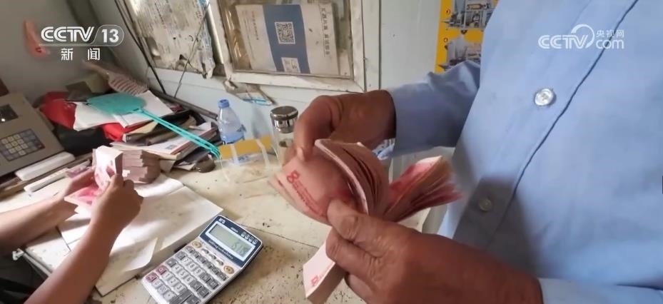 正說著,一位老大爺來賣糧,過稱、檢查一番之后,李芳用現(xiàn)金付了糧款。
