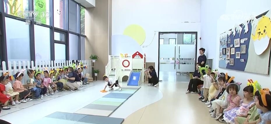 托育中心按照每個班2名幼師、1名保育員的配置對幼兒進行照護。每個月還會設(shè)計主題游戲活動,促進孩子的身體發(fā)展、情感自理能力以及社交能力等。
