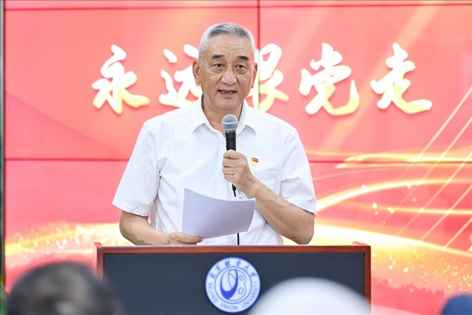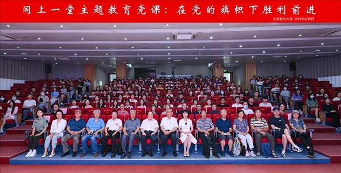 觀展后,參會(huì)嘉賓與管理學(xué)院200多名學(xué)生黨員及入黨積極分子在南院報(bào)告廳,共同開展“同上一堂主題教育專題黨課,在黨的旗幟下勝利前進(jìn)”黨課活動(dòng)。此次講座由管理學(xué)院黨委書記張玲娜主持,由北京新四軍暨華中抗日根據(jù)地研究會(huì)原副會(huì)長劉華蘇主講。