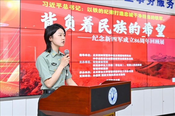 為深入學(xué)習(xí)貫徹習(xí)近平新時(shí)代中國特色社會(huì)主義思想主題教育,落實(shí)習(xí)近平加強(qiáng)全民國防教育的重要指示精神,弘揚(yáng)愛國主義精神、增強(qiáng)全民國防意識(shí),推動(dòng)全民國防教育進(jìn)校園,深化學(xué)校“大思政課”建設(shè),6月9日,由北京新四軍暨華中抗日根據(jù)地研究會(huì)、中華志愿者協(xié)會(huì)國防教育志愿服務(wù)總隊(duì)指導(dǎo),北京聯(lián)合大學(xué)黨委學(xué)生工作部(學(xué)生處)、黨委人民武裝部、黨委宣傳部、北京聯(lián)合大學(xué)新時(shí)代文明實(shí)踐中心建設(shè)規(guī)劃研究所、管理學(xué)院黨委共同主辦,管理學(xué)院學(xué)生工作辦公室承辦的“背負(fù)民族希望——紀(jì)念新四軍成立86周年回顧展”大會(huì)在北四環(huán)校區(qū)學(xué)生事務(wù)大廳舉行。