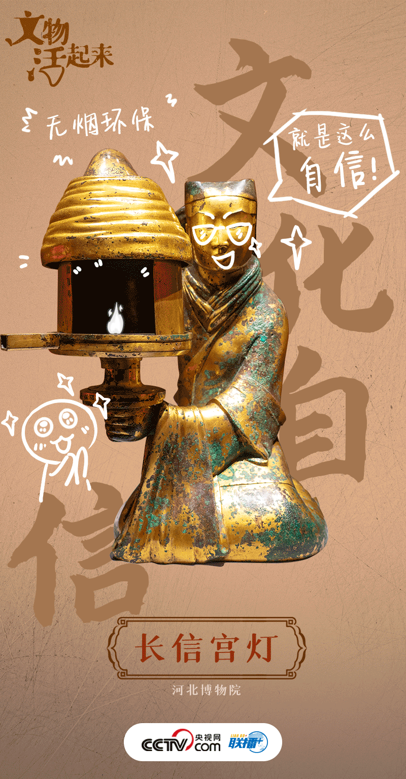 這盞燈來自西漢(公元前202年-公元8年),因燈身刻有“長信尚浴”的銘文而得名長信宮燈。長信宮燈設(shè)計(jì)巧妙,是目前所見唯一一件漢代人形銅燈,整件燈分為六個(gè)部分,每部分都可以簡單地拆卸重裝,宮女的袖管與身體連接形成排煙通道,環(huán)保設(shè)計(jì)理念獨(dú)特、超前,被譽(yù)為“中華第一燈”。