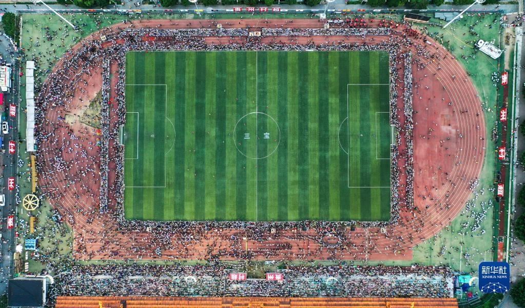 6月10日拍攝的貴州“村超”足球比賽現(xiàn)場(chǎng)(無人機(jī)照片)。