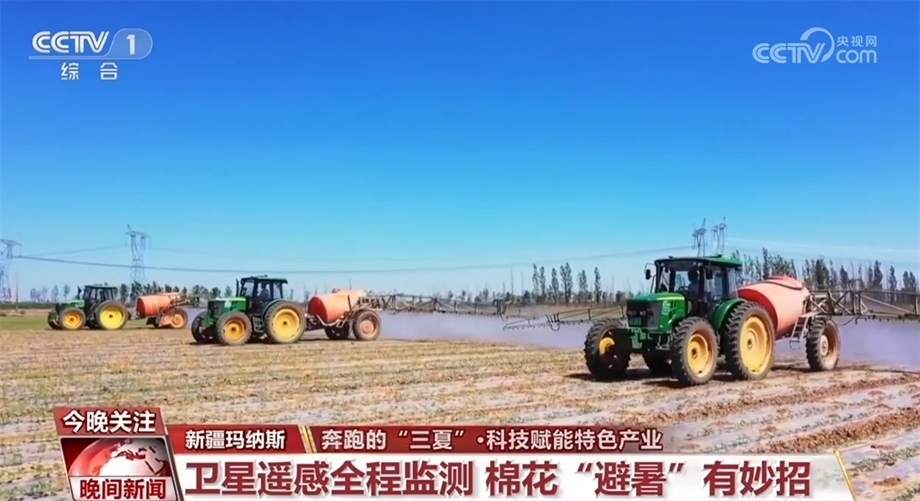 眼下,新疆昌吉瑪納斯縣的棉花正值現(xiàn)蕾期?,F(xiàn)蕾期指的是出現(xiàn)花蕾到開(kāi)花這一段時(shí)間,這個(gè)時(shí)候棉株生長(zhǎng)最快,然而持續(xù)的高溫給田間管理帶來(lái)考驗(yàn)。在瑪納斯縣樂(lè)土驛鎮(zhèn)的棉花田里,三臺(tái)裝有北斗導(dǎo)航系統(tǒng)的大馬力拖拉機(jī)正按照預(yù)先設(shè)定的線路進(jìn)行除草作業(yè)。這是農(nóng)技人員通過(guò)衛(wèi)星遙感棉花全程監(jiān)測(cè)技術(shù),幫種植戶制定的科學(xué)田管方案。